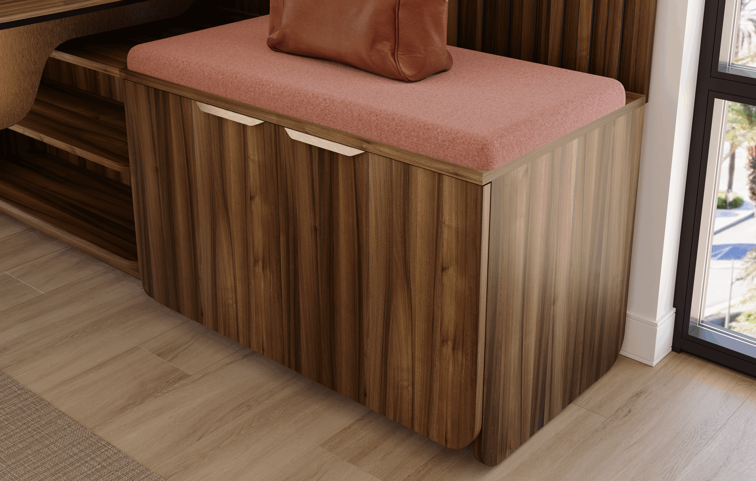 - Cubbies: Modular open shelving systems for shared storage and high-traffic zones