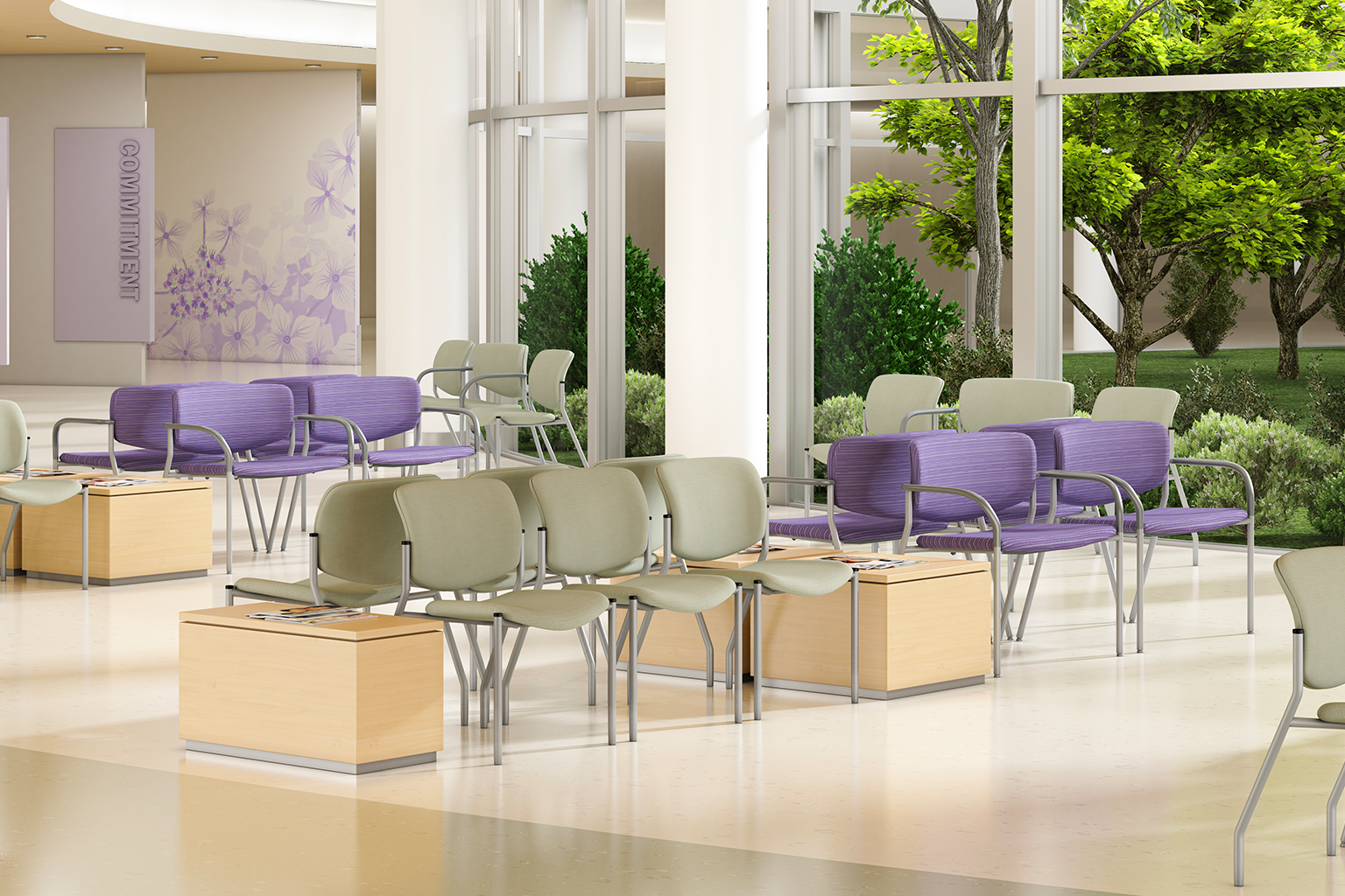 - Durable plastic shell chairs for high-traffic waiting areas