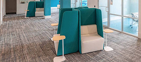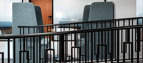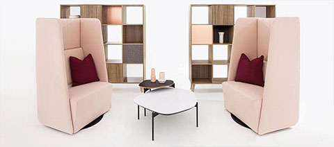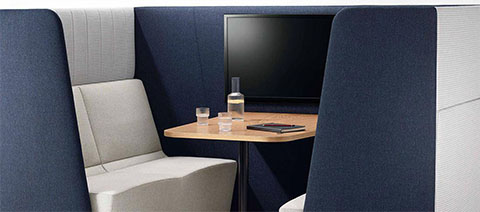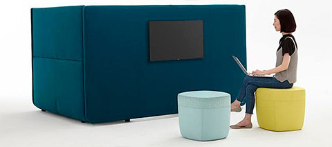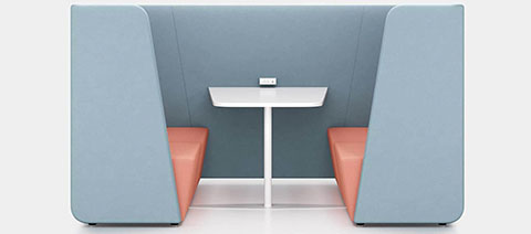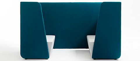 Bota Booth is a relaxed meeting hub of two facing lounge units surrounded by an acoustic cocoon.
