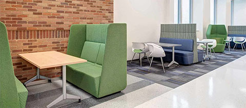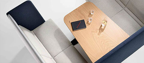 Bota is an ever-growing lounge collection that effortlessly adapts to spaces as a touchdown terminal, brief meeting area, personal focus nook and an overall hub of concourse with integrated power. Integrated tables make Bota Booth an instant mini conference room accommodating four to six people.